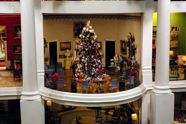 Today's Action Photo is a picture of a room decorated with a Christmas tree inside a miniature model of the White House on display inside the Lyndon Johnson Library in Austin, Texas!