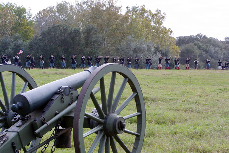 Today's Action Photo is a picture of a line of Union soldiers preparing to fire their rifles across the battlefield at Civil War Weekend near Houston, Texas!