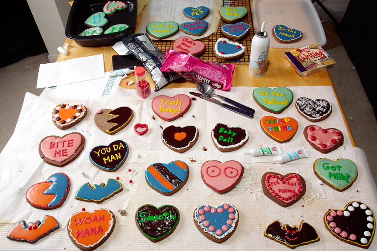 Today's Action Photo is a picture of a batch of "conversation heart" cookies I made up for Valentine's Day at the office, with a bit of a batty spin! Don't we have tons of fun at TimeGate? (I'm the official Morale Officer)