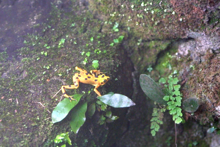 Today's Action Photo is a picture of one of Panama's famous "El Dorado" golden frogs, unfortunately shot through a wire mesh at the zoological gardens in El Valle, Panama!