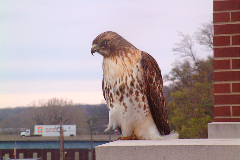 Today's Action Photo is a picture of a hawk perched on a ledge in Quincy, Illinois! Guest photographer: Mom.