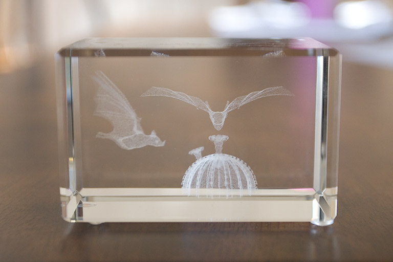 Today's Action Photo is a picture of images of bats engraved in crystal!