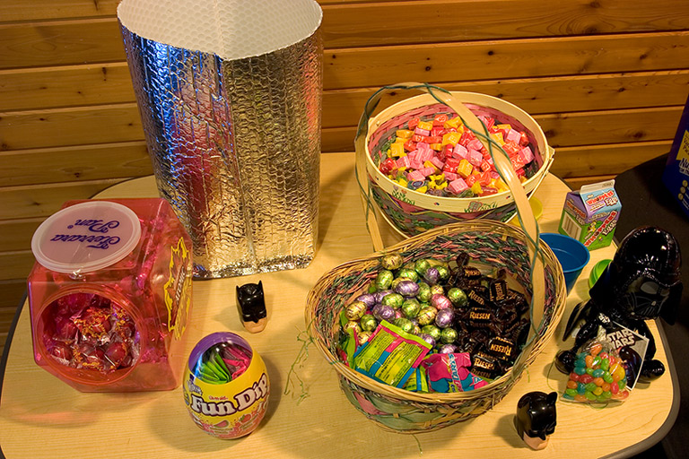 Today's Action Photo is a picture of part of the Easter Batty's candy display at Electronic Arts! Saving for a house has cut into the Easter Batty's budget, so it was quite a bit smaller than previous years.