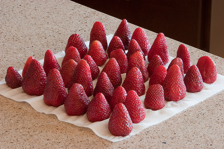 Today's Action Photo is a picture of selected, washed, and de-stemmed strawberries ready for processing!