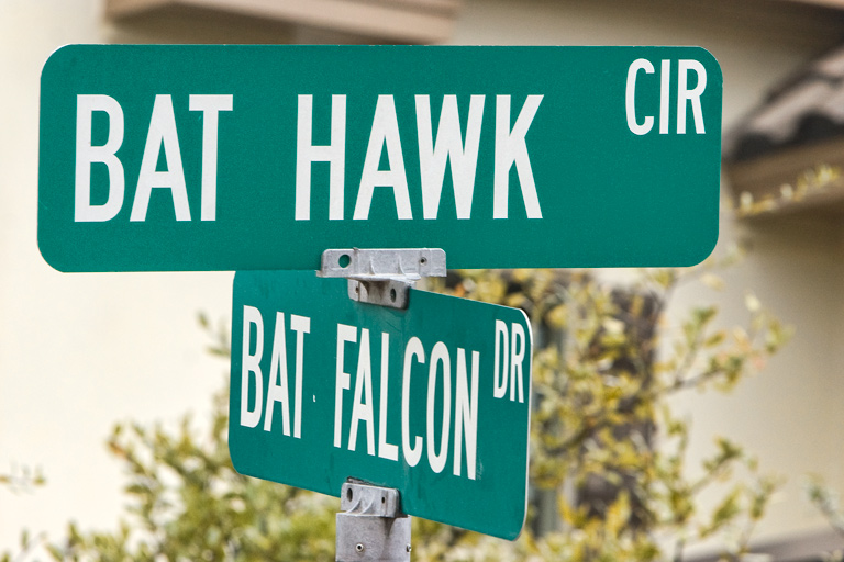 Today's Action Photo is a picture of the intersection of Bat Hawk Circle and Bat Falcon Drive in the Falconhead subdivision of Austin, Texas! I salute their excellent taste in street naming!
