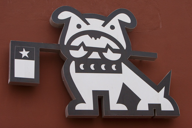 Today's Action Photo is a picture of an interesting logo of a Texas bulldog on a building in Austin, Texas!