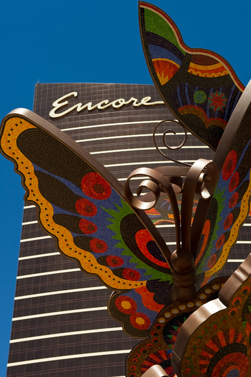 Today's Action Photo is a picture of the Wynn Encore Hotel in Las Vegas, looking up through the butterfly sculpture outside the new Beach Club!