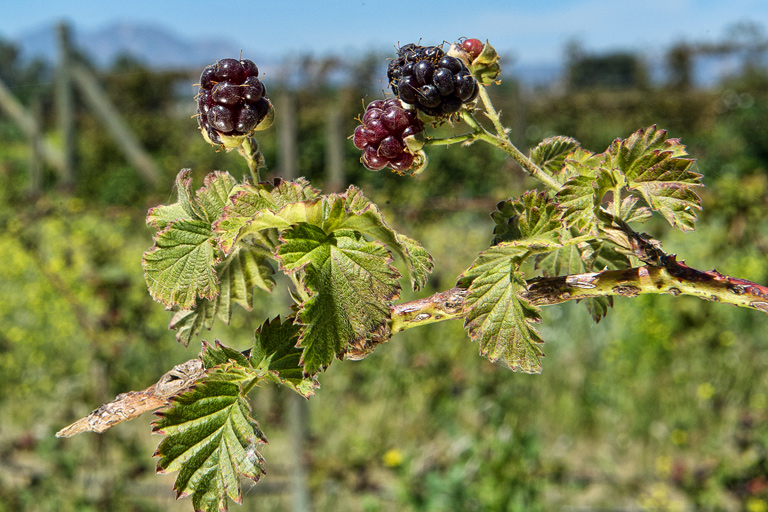 Today's Action Photo is a picture of boysenberries growing in Brentwood, California, with Mount Diablo in the distance!