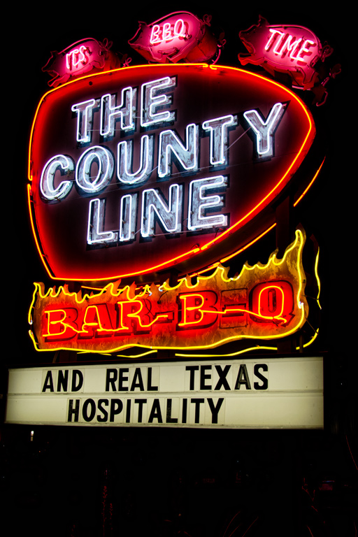 Today's Action Photo is a picture of the sign for the County Line on the Lake restaurant in Austin, Texas, featuring BBQ and real Texas hospitality!