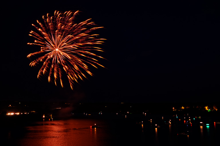Today's Action Photo is a picture of July 4th fireworks exploding over Lake Marble Falls, in Marble Falls, Texas!