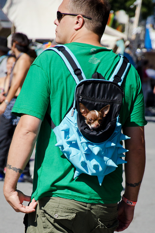 Today's Action Photo is a picture of a chihuahua in a papoose-style backpack at Burning Man Decompression/Heat the Street 2011 in San Francisco, California!