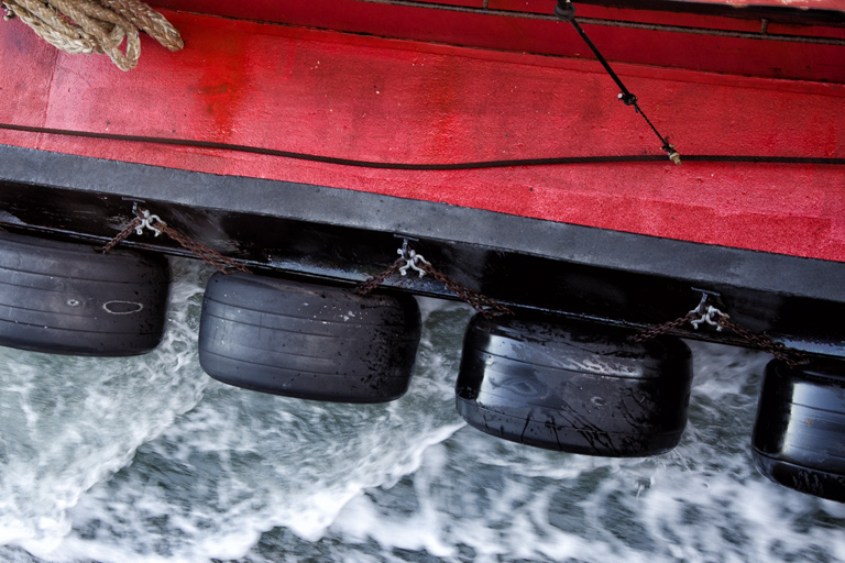 ![]() ![]() Today's Action Photo is a picture of water rushing by old tires used as padding on the side of a tugboat! |
