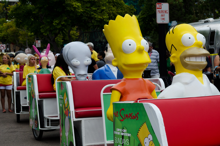 ![]() ![]() Today's Action Photo is a picture of special pedicabs lined up outside the San Diego Convention Center for Comic-Con! We actually rode in the Family Guy one in back, the pedal guy charged us $60 for about one mile. |