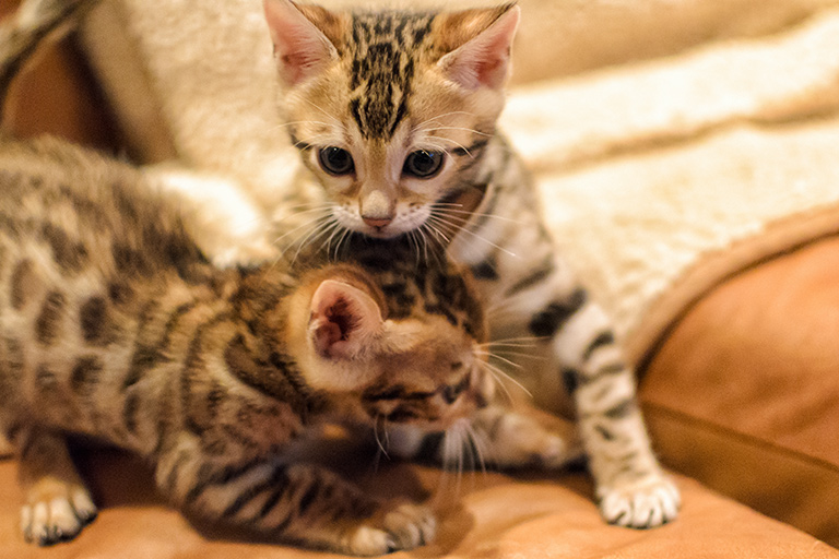 Today's Action Photo is a picture of my six-week-old Bengal kitten Noctiva (facing forward) playing with one of her brothers!