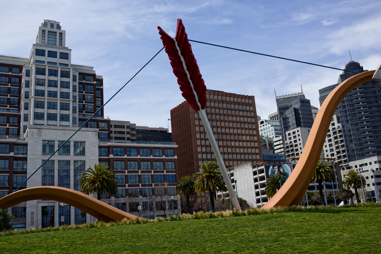 Today's Action Photo is a picture of the Cupid's Span sculpture on the Embarcadero in San Francisco!