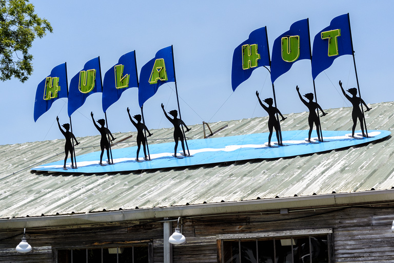 Today's Action Photo is a picture of dancers on the top of the thatched roof of Hula Hut in Austin, Texas!