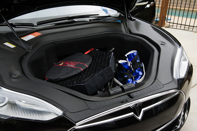 Today's Action Photo is a picture of the 'frunk', or front trunk, on my Tesla Model S electric car, packed with gear for San Diego Comic-Con 2014! You can see our reflector, mostly used as a scrim, the 24-inch key light octo modifier, and my shiny Comic-Con shoes, which got a lot of compliments!
