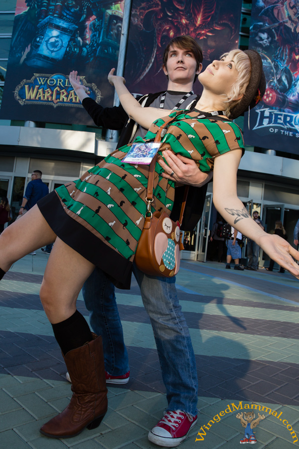 This is a picture of cosplay personality and star of stage and screen Commander Holly at BlizzCon 2014! She and hubby wowed us with their mastery of the tango in an impromptu dance-off in front of the convention center!