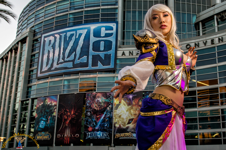 This is a picture of awesome cosplayer and beautiful lady Stella Chuu cosplaying Jaina Proudmoore, the leader of the Alliance Stormwind mages, in the Blizzard Game "World of Warcraft!" Stella very patiently worked with us to get this shot with fantastic posing, it was hard to choose one of the series to run, they were all great!
