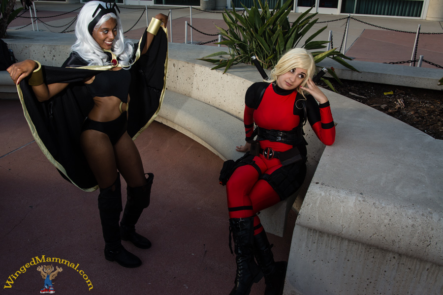 This is a picture of Storm from X-Men unsuccessfully trying to get Deadpool's attention at San Diego Comic-Con 2014!