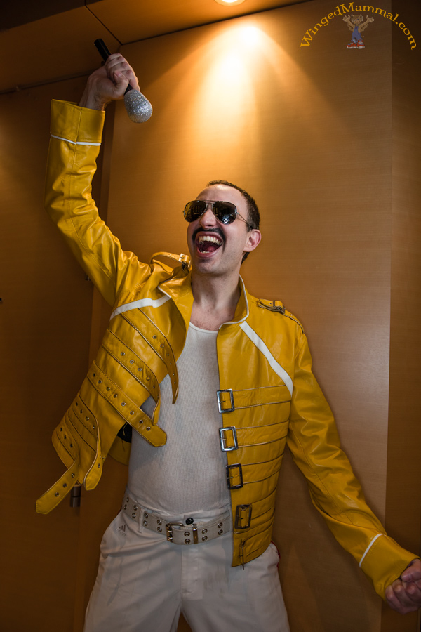This is a picture of video producer Micah "Beat Down Boogie" Moore cosplaying Freddie Mercury at Dragon Con 2014!