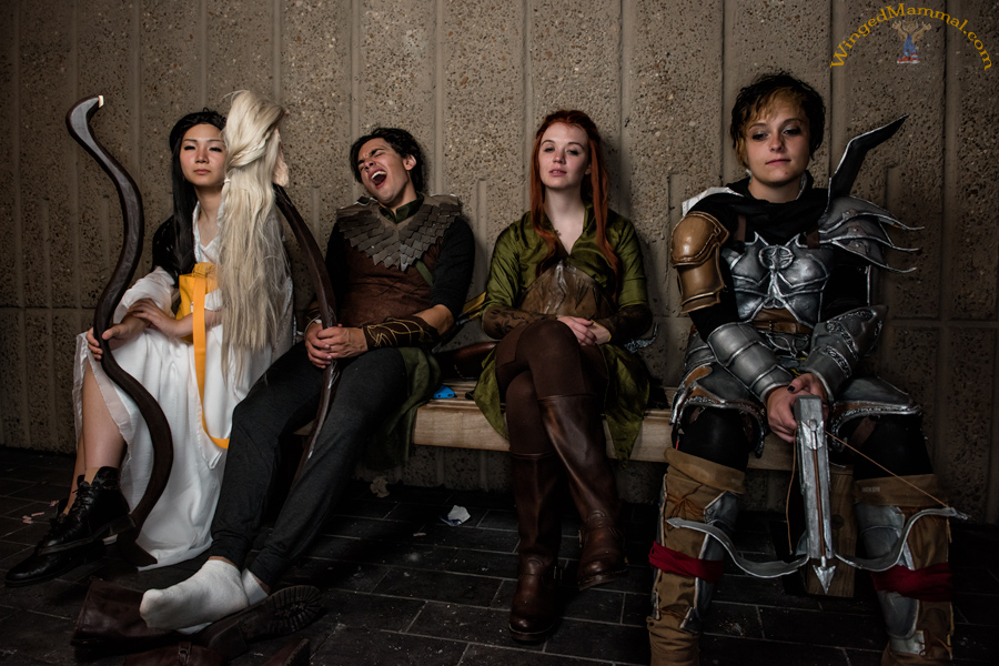 This is a picture of very tired cosplayers catching some rest on a bench outside the Hyatt Hotel at Dragon Con 2014!