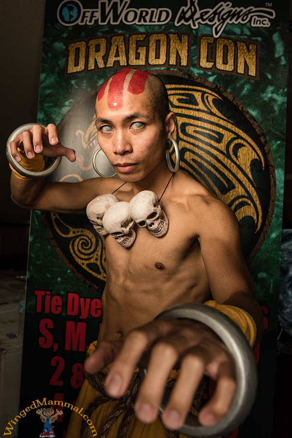 This is a picture of a very nicely done Dhalsim cosplay from the Capcom game "Street Fighter" at Dragon Con 2014!