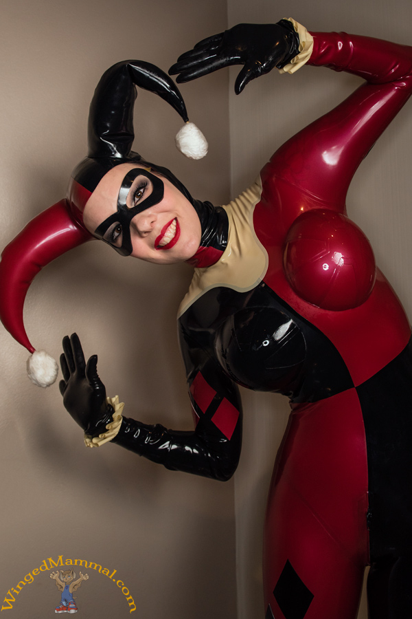 This is a picture of a very nicely done latex version of Harley Quinn Dragon Con 2014! She also had a nice latex Miranda from "Mass Effect", can't imagine how it feels to wear latex in the Georgia heat.