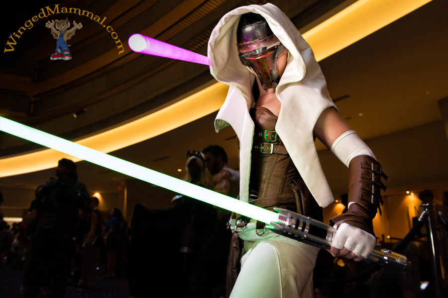 This is a picture of Revan the Redeemed, Light Side version, from "Star Wars: Knights of the Old Republic" in the Marriott at Dragon Con 2014! Cosplay by Sarah F, whose work can be found here: