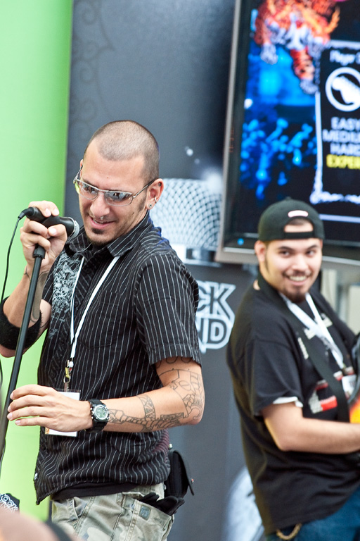 This is the MTV Games house band featuring lead singer Kyle Mercury setting a new high score in Rock Band for the crowd to beat!
