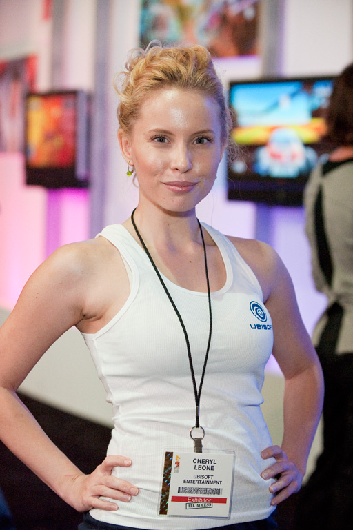 Ubisoft had well-trained, clean-cut girls wearing undershirts who demoed games and directed traffic through the busy Ubisoft area.