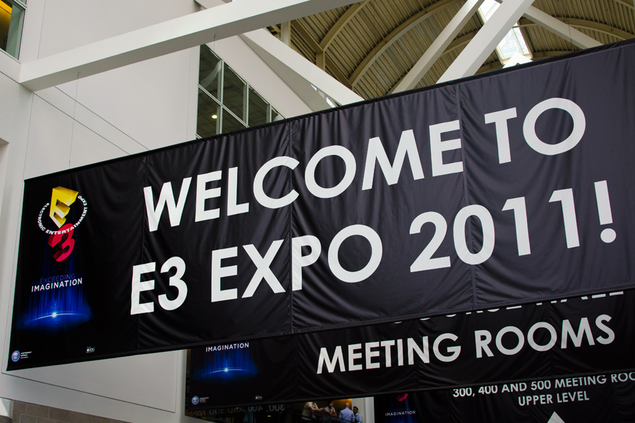 A banner at the side entrance to the South Hall welcomes attendees to E3 2011!