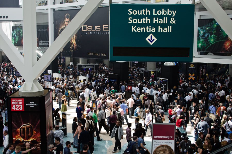 The crowd gathers in the South Hall lobby anticipating the doors opening for E3 2011!