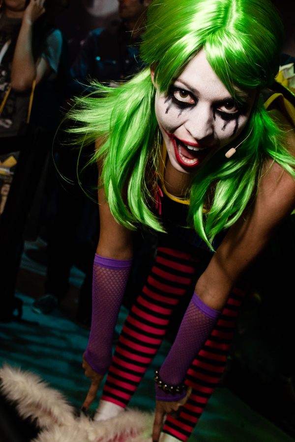 A very nice female Joker does some wacky hijinks for the camera at E3 2011!