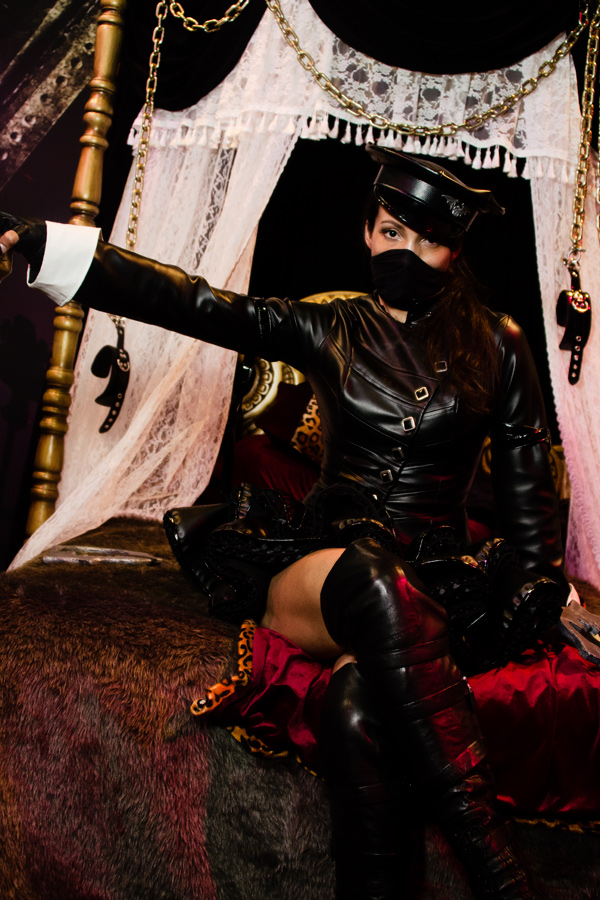 A masked dominatrix orders everyone out of the bedroom at E3 2011!