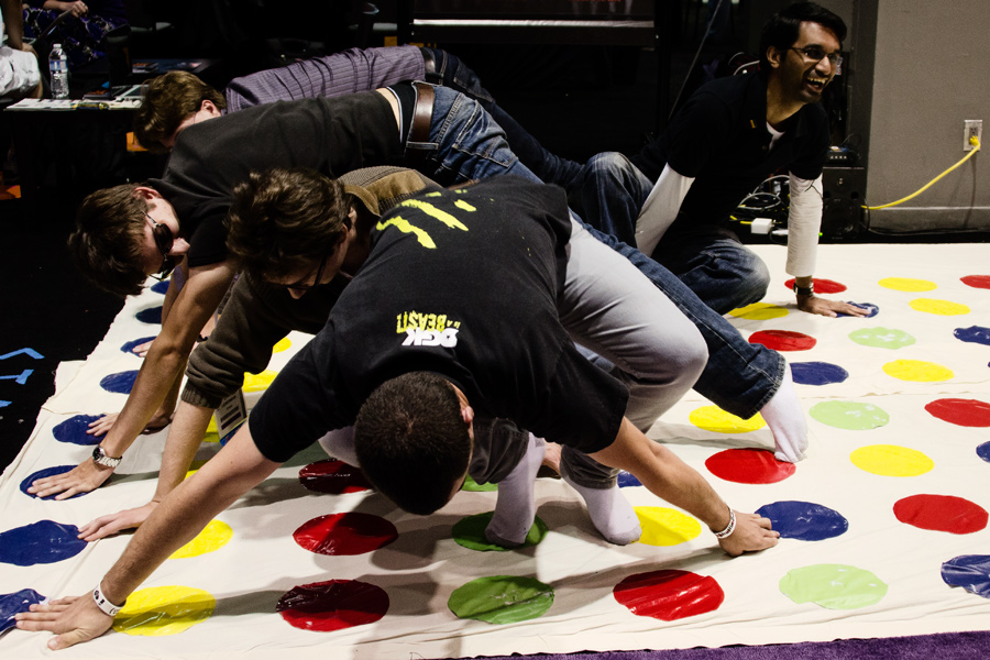 In the independent games area of the West Hall, a real-life game of Twister breaks out at E3 2011!