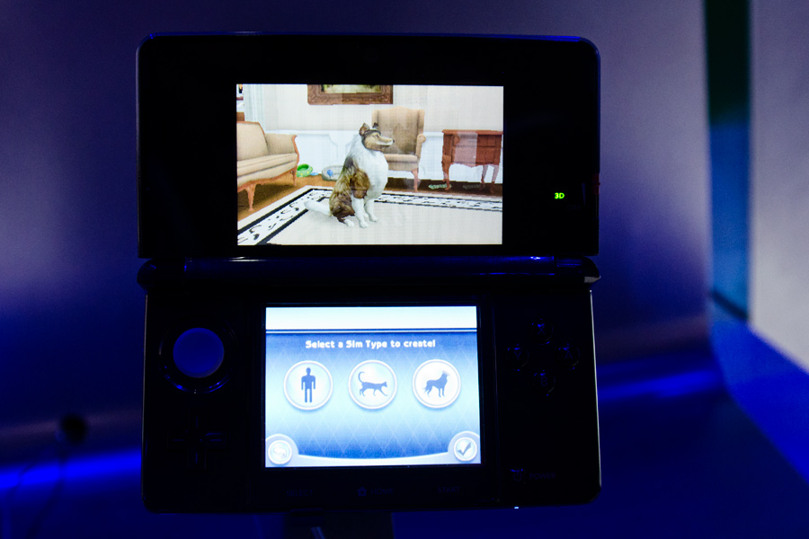 The Sims Pets was playable on a Nintendo 3DS in the EA booth at E3 2011! I personally could not see the 3D, it really hurt my eyes, you can faintly see the second image of the dog.