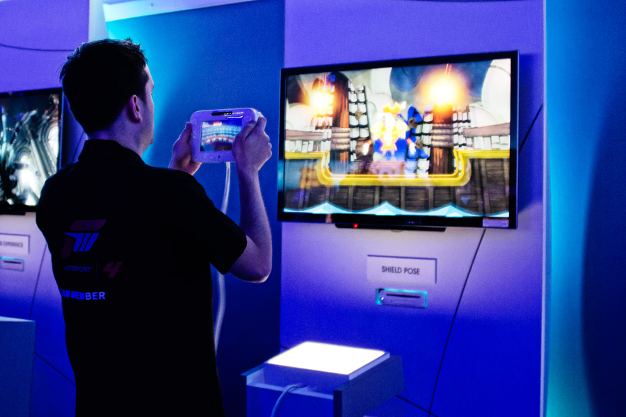 A lucky attendee reaches the front of the hour-long line to try out the "Wii U" controller from Nintendo at E3 2011!