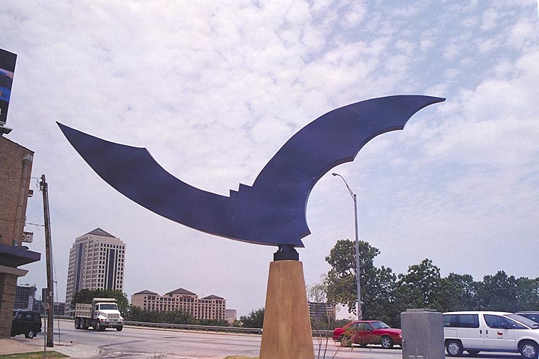This is a picture of the complete bat sculpture on the day of its official unveiling on June 12, 1998. This is looking northeast towards the Four Seasons Hotel.