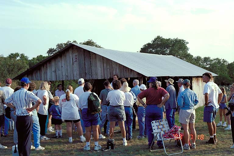 This is a picture of a BCI executive giving a brief talk on the state of Bat Conservation International and Bracken Cave. Photo taken with a Canon Elan IIe camera on a Manfrotto Wilderness tripod with a 50mm f/1.8 lens, Kodak Royal Gold 100 film.