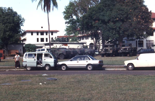 ![]() ![]() This is Balboa High School, with United States Army personnel carriers parked on the grounds, bringing soldiers to prepare the school's stadium for the influx of refugees. |