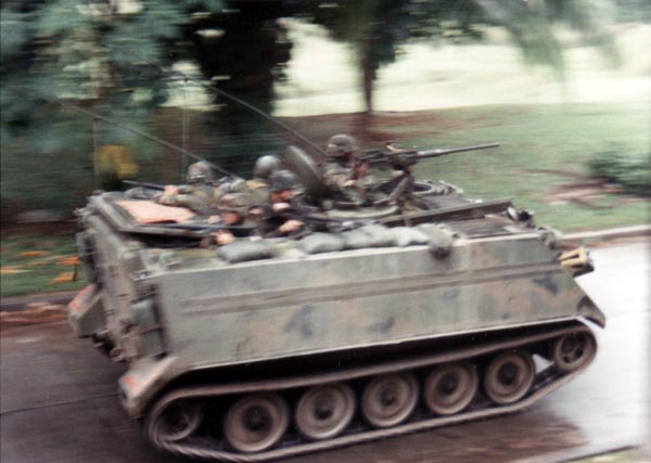 ![]() ![]() An armored personnel carrier filled with heavily armed soldiers whizzes right by our house. |