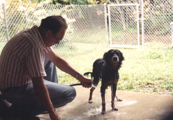 ![]() ![]() This is my dad giving our dog Amigo a bath at my parents' home in Panama. Amigo didn't like baths and he was terrified of cameras, so he usually looked more ferocious than he does here. |